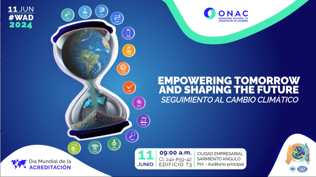En ONAC nos hemos sumado al llamado de las cooperaciones y foros internacionales de acreditación para conmemorar el Día Mundial de la Acreditación 2024, con un evento llamado «Empowering Tomorrow and Shaping the Future – Seguimiento al cambio climático»