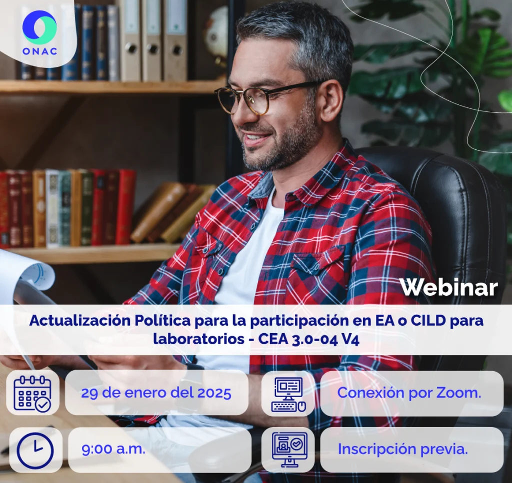 Webinar: CEA-3.0-04 v4 POLÍTICA PARA LA PARTICIPACIÓN EN ENSAYOS DE APTITUD (EA) O COMPARACIONES INTERLABORATORIOS DISTINTAS A ENSAYOS DE APTITUD (CILD)