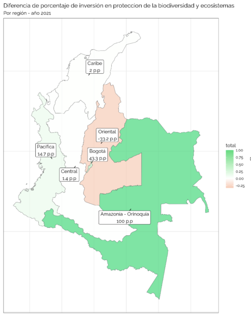 Gráfico 10 Diferencia de porcentaje en inversion de proteccion de la biodiversidad por región.