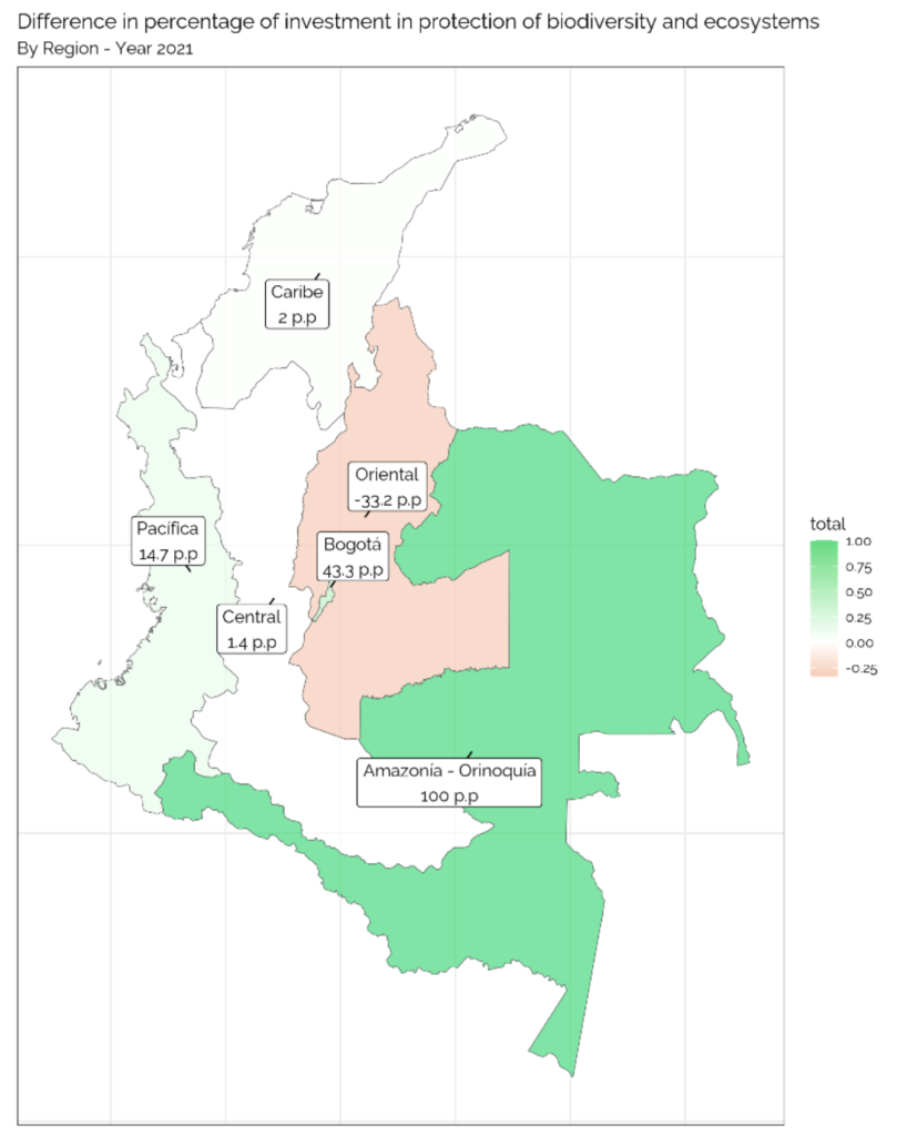 Figure 10: Percentage difference in biodiversity protection investment by region